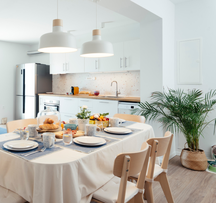 Kuhinja je opremljena perilicom posuđa, hladnjakom sa zamrzivačem, štednjakom, pećnicom, aparatom za espresso i filter kavu te kuhalom za vodu.