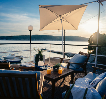 Apartman Raža posjeduje i vlastitu natkrivenu terasu površine 20m2 u kojoj možete uživati od ranog jutra pa sve do zalaska sunca. Za sve goste koji više vole sjenu, na raspolaganju je zajednička terasa uz samo more opremljena sa ležaljkama i vrtnim namještajem.